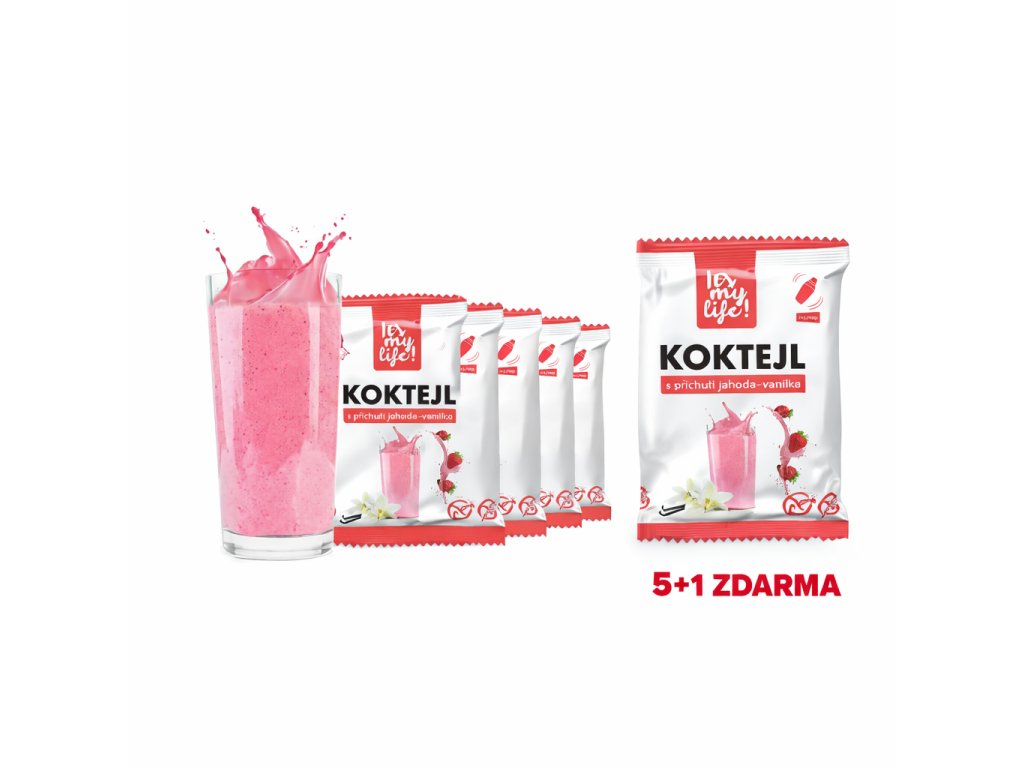 Proteinový koktejl s příchutí jahoda-vanilka 5+1 ZDARMA