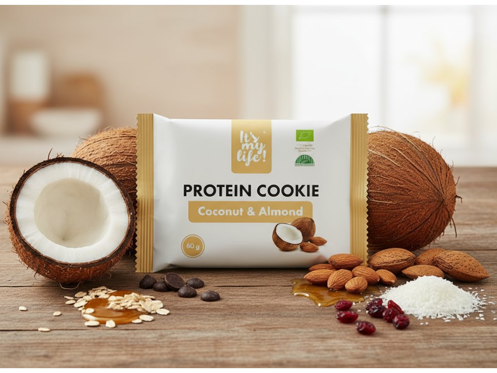Vláčná, jemná a doslova se rozplývá na jazyku. Kombinace BIO mléčného a BIO syrovátkového proteinu, mandlové mouky a mandlového krému tvoří základ této výživné a neodolatelně kokosové sušenky. Obsahuje 13g bílkoviny, 11 g vlákniny a pouze 8,34 g sacharidů. Bohatou chuť jí dodává kokos a kokosová smetana, sladkost pak zajišťuje BIO kokosový sirup a inulin – přírodní vláknina s nízkým glykemickým indexem.