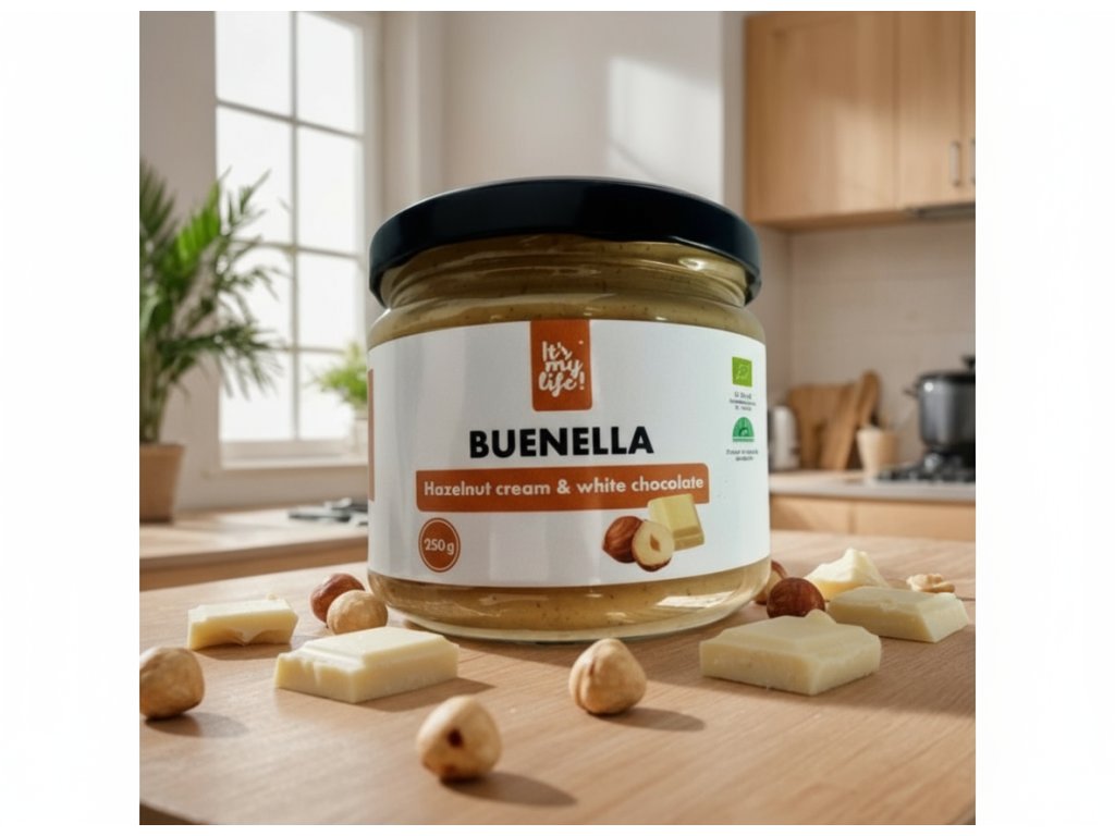BIO lískooříškový krém s bílou čokoládou BUENELLA 250 g