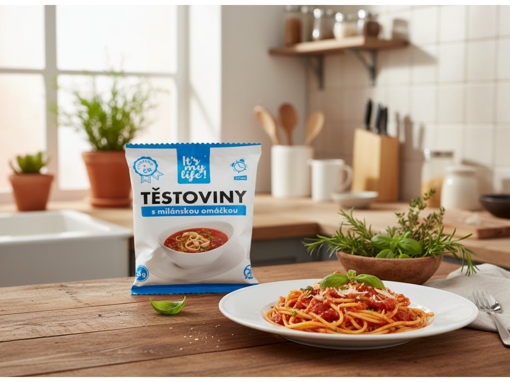 Z čeho se proteinové těstoviny s milánskou omáčkou skládají?